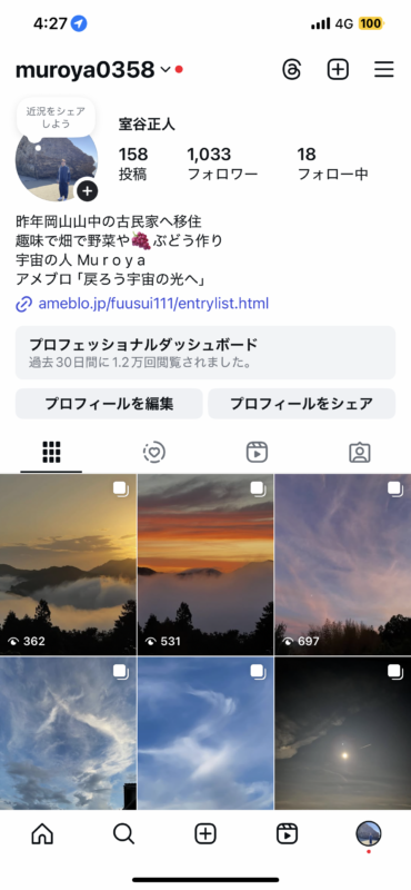 写真左側が今日現在の僕のインスタ