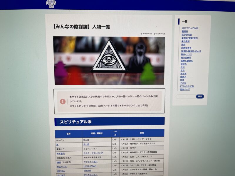 スピリチュアル系、農業系、医療系、政治系、その他 . . .